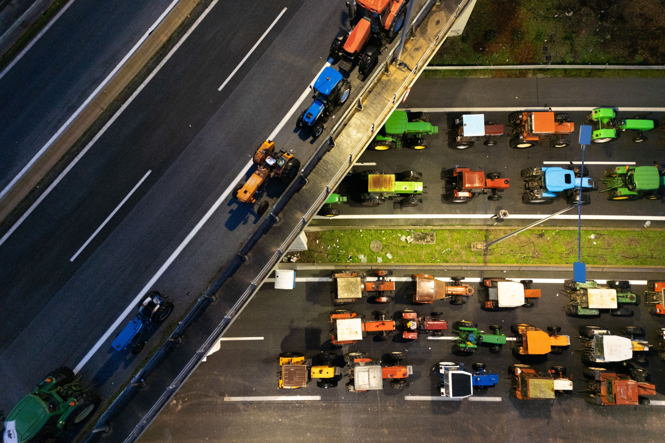 Blockade of the Thessaloniki - Athens highway in Nikaia, Larissa by protesting farmers, December 4, 2025. Farmers have lined up their tractors for the fifth day on the highway protesting the delay in the payment of European compensation. / Αποκλεισμός του αυτοκινητόδρομου Θεσσαλονίκης - Αθήνας στη Νίκαια της Λάρισας απο διαμαρτυρόμενους αγρότες, 4 Δεκεμβρίου 2025. Οι αγρότες έχουν παρατάξει τα τρακτέρ τους για πέμπτη ημέρα στον αυτοκινητόδρομο διαμαρτυρόμενοι για την καθυστέρηση καταβολής των ευρωπαϊκών αποζημιώσεων.