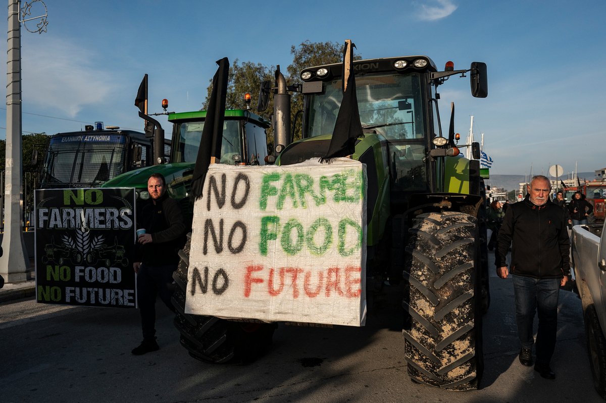 Αγρότες κατευθύνονται με τα τρακτέρ τους προς την είσοδο του επιβατικού λιμανιού του Βόλου, κατά τη διάρκεια των αγροτικών κινητοποιήσεων, Τετάρτη 10 Δεκεμβρίου 2025. Κινητοποίηση για αποκλεισμό στο λιμάνι του Βόλου πραγματοποιούν αυτή την ώρα οι Θεσσαλοί αγρότες και κτηνοτρόφοι, στο πλαίσιο της κλιμάκωσης των αγώνων τους. Νωρίς το πρωί της Τετάρτης, αγρότες από το μπλόκο της Νίκαιας συγκεντρώθηκαν στον κόμβο του Πλατύκαμπου, όπου συναντήθηκαν με συναδέλφους τους από τα μπλόκα του Ε65 σε Καρδίτσα και Τρίκαλα. Από εκεί ξεκίνησαν συντονισμένα την πορεία τους προς τον Βόλο, με στόχο τη συμμετοχή στην κινητοποίηση στο λιμάνι. Λίγο αργότερα έφτασαν στον Βόλο και παραγωγοί από το μπλόκο των Μικροθηβών, οι οποίοι βρέθηκαν στην είσοδο του επιβατικού λιμανιού, αντικρίζοντας κλειστές πύλες και αστυνομικές δυνάμεις, ενώ στο σημείο πραγματοποιούνται διαπραγματεύσεις με την αστυνομία. Στο πλευρό των αγροτών βρίσκονται και οι ψαράδες της Μαγνησίας, που ως ένδειξη συμπαράστασης ετοιμάζονται για θαλάσσιο αποκλεισμό. Στόχος των κινητοποιήσεων είναι η ανάδειξη των αιτημάτων τους. ΑΠΕ-ΜΠΕ/ΑΠΕ-Μ