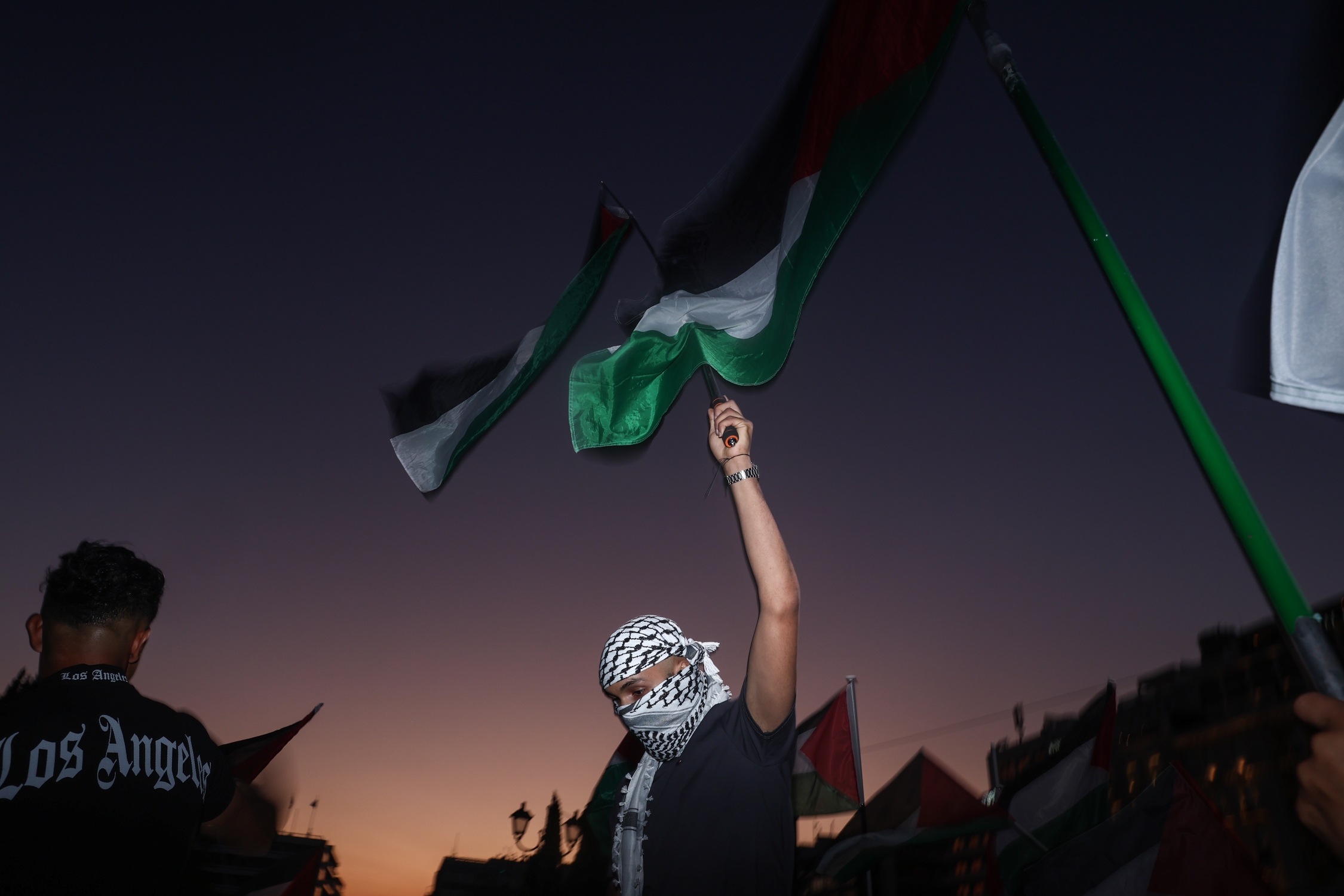 Κρατώντας στα χέρια τους παλαιστινιακές σημαίες, πανό, άδειες κατσαρόλες και φορώντας την καφίγια (την παραδοσιακή παλαιστινιακή μαντίλα), χιλιάδες πολίτες πλημμύρησαν χθες (10/8) τους δρόμους σε περισσότερες από 100 περιοχές της χώρας, φωνάζοντας για ελευθερία, δικαιοσύνη και τερματισμό της γενοκτονίας στη Γάζα.