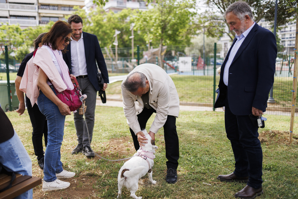 Ο δήμαρχος Θεσσαλονίκης Στέλιος Αγγελούδης επιβλέπει το πρώτο πάρκο σκύλων στη Θεσσαλονίκη, στο πλαίσιο των εγκαινίων του, την Τρίτη 6 Μαΐου 2025. ΑΠΕ-ΜΠΕ/ ΑΧΙΛΛΕΑΣ ΧΗΡΑΣ