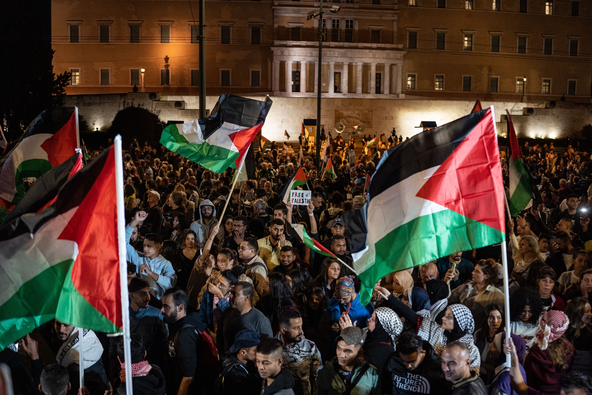 «Λευτεριά στην Παλαιστίνη»: Μεγαλειώδης πορεία αλληλεγγύης στην Αθήνα υπέρ των Παλαιστινίων