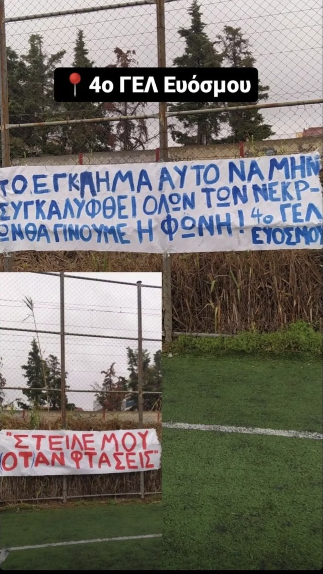 Σε κατάληψη προχώρησαν και στο 1ο ΓΕΛ Πυλαίας, με σύνθημα «ποτέ ξανά», ενώ στο Πειραματικό ΓΕΛ Νεάπολης, οι μαθητές σχημάτισαν με τις τσάντες τους τη λέξη «Έφτασες;».