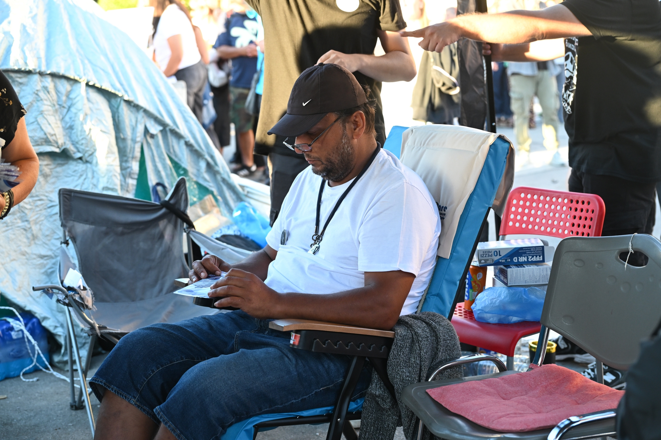 Από την πρώτη μέρα, η Αστυνομία επιχείρησε να τρομοκρατήσει τον απεργό πείνας, ζητώντας του δήθεν «εξακρίβωση στοιχείων» και δείχνοντας ότι θέλει να σταματήσει την «ενοχλητική» δράση του. Τον υπερασπίστηκαν αποφασιστικά επί τόπου άλλοι συγγενείς θυμάτων του εγκλήματος των Τεμπών και ο κόσμος που περνάει από το Σύνταγμα.