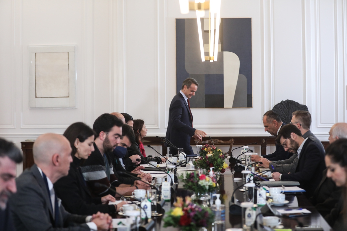 Συνάντηση του Πρωθυπουργού Κυριάκου Μητσοτάκη με εκπροσώπους των καλλιτεχνών για το ζήτημα της καλλιτεχνικής εκπαίδευσης. , Αθήνα , 15 Φεβρουαρίου , 2023