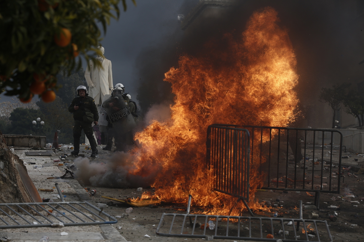 Επεισόδια σημειώθηκαν νωρίτερα γύρω από το Σύνταγμα, κυρίως στην οδό Μητροπόλεως, ενώ έχουν σημειωθεί και τραυματισμοί πολιτών.