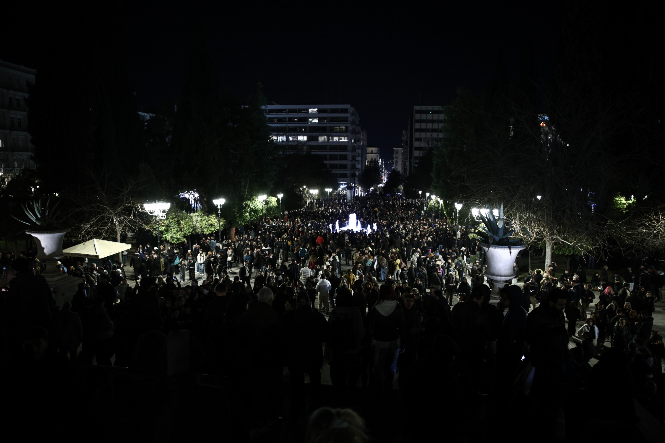 Πριν ξεκινήσουν οι ομιλίες, οι διαδηλωτές τήρησαν ενός λεπτού σιγή τιμώντας τη μνήμη των 57 αδικοχαμένων στις ράγες του σιδηρόδρομου. «Όλων των νεκρών είμαστε φωνή, το έγκλημα στα Τέμπη δεν θα συγκαλυφθεί», ήταν το σύνθημα που δόνησε το Σύνταγμα.