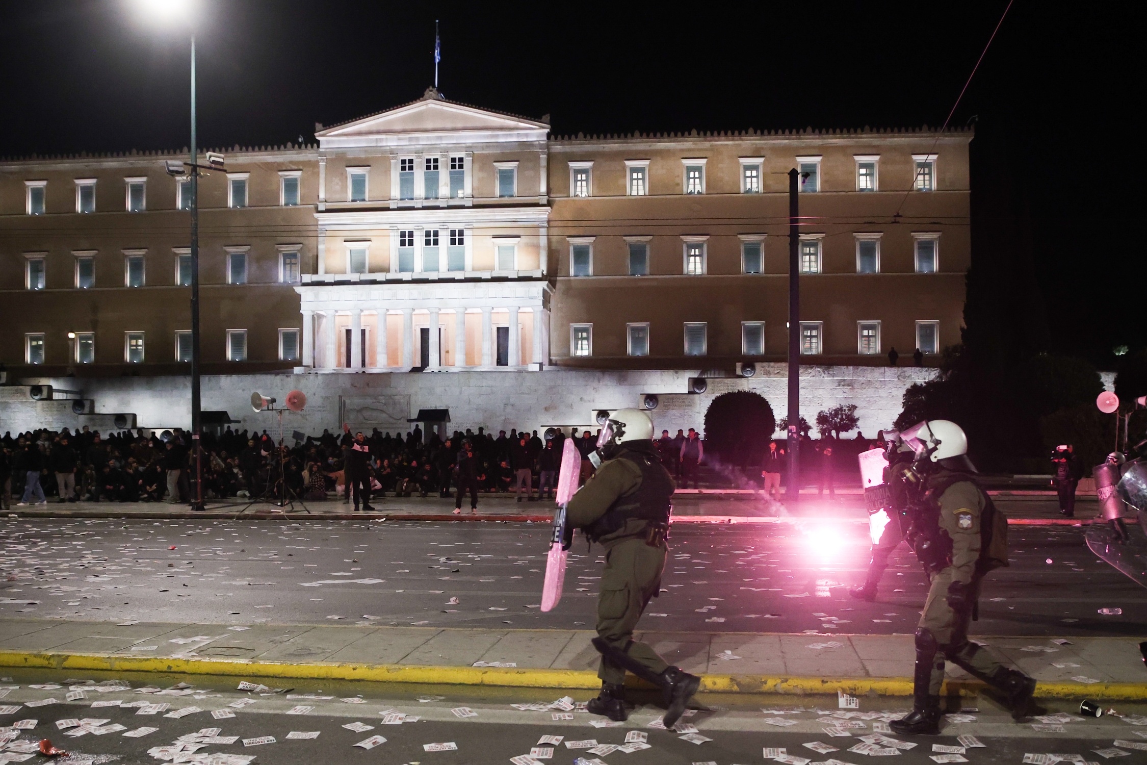 Επεισόδια μεταξύ σημειώθηκαν το βράδυ της Τετάρτης μετά το τέλος της συγκέντρωσης διαμαρτυρίας που πραγματοποιήθηκε στην πλατεία Συντάγματος για το έγκλημα στα Τέμπη.