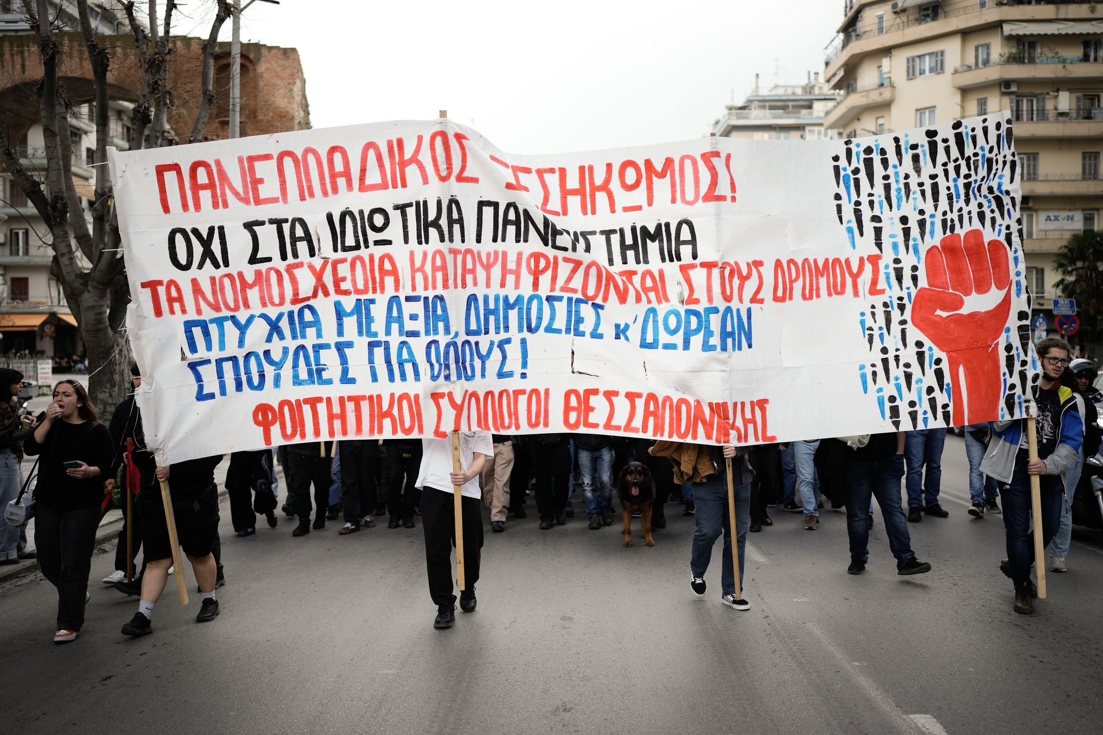 Θεσσαλονίκη: Μαζική φοιτητική πορεία ενάντια στο ν/σ για τα ιδιωτικά πανεπιστήμια