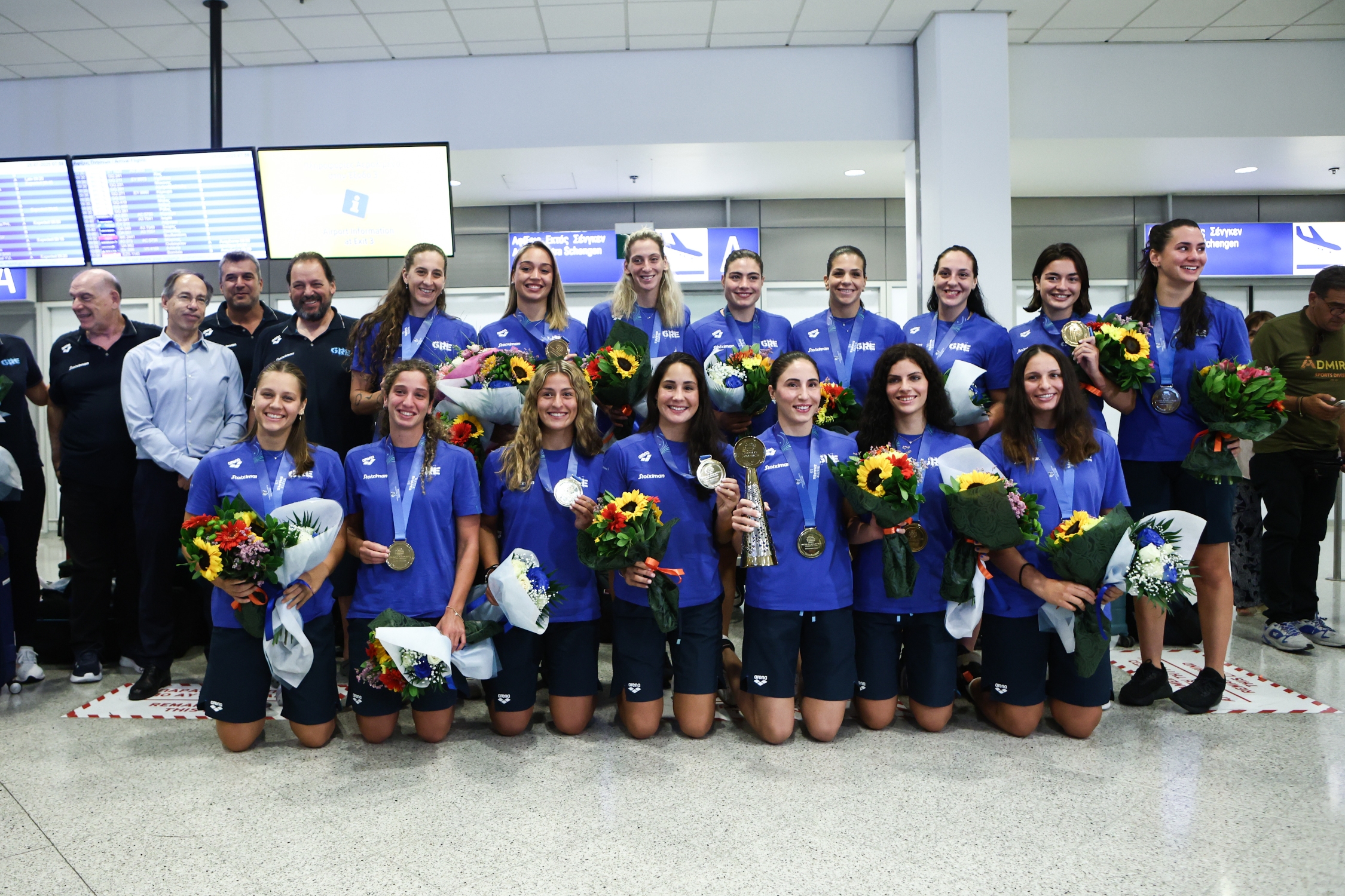 Παρά την εμφανή κούραση από το πολύωρο ταξίδι, οι παγκόσμιες πρωταθλήτριες της εθνικής υδατοσφαίρισης γυναικών γέμισαν με τη λάμψη των μεταλλίων τους, αλλά κυρίως με το χαμόγελό τους, την αίθουσα αφίξεων του αεροδορμίου “Ελ. Βενιζέλος”, κατά την επιστροφή τους από τη Σιγκαπούρη. Ο γενικός γραμματέας Αθλητισμού, Γιώργος Μαυρωτάς, συγγενείς και φίλοι υποδέχθηκαν τις θριαμβεύτριες του Παγκοσμίου Πρωταθλήματος, μαζί με δεκάδες κάμερες, φωτογράφους και εκπροσώπους των ΜΜΕ. Μία κατάσταση πρωτόγνωρη για αυτές τις αθλήτριες, με την αρχηγό Ελευθερία Πλευρίτου να δράττεται της ευκαιρίας για να ζητήσει στήριξη “ακόμη κι όταν δεν έρχονται τέτοιες διακρίσεις” και τον ομοσπονδιακό τεχνικό, Χάρη Παυλίδη, να υπενθυμίζει ότι οι μεγάλες επιτυχίες των εθνικών ομάδων πόλο έρχονται παρά την έλλειψη υποδομών.