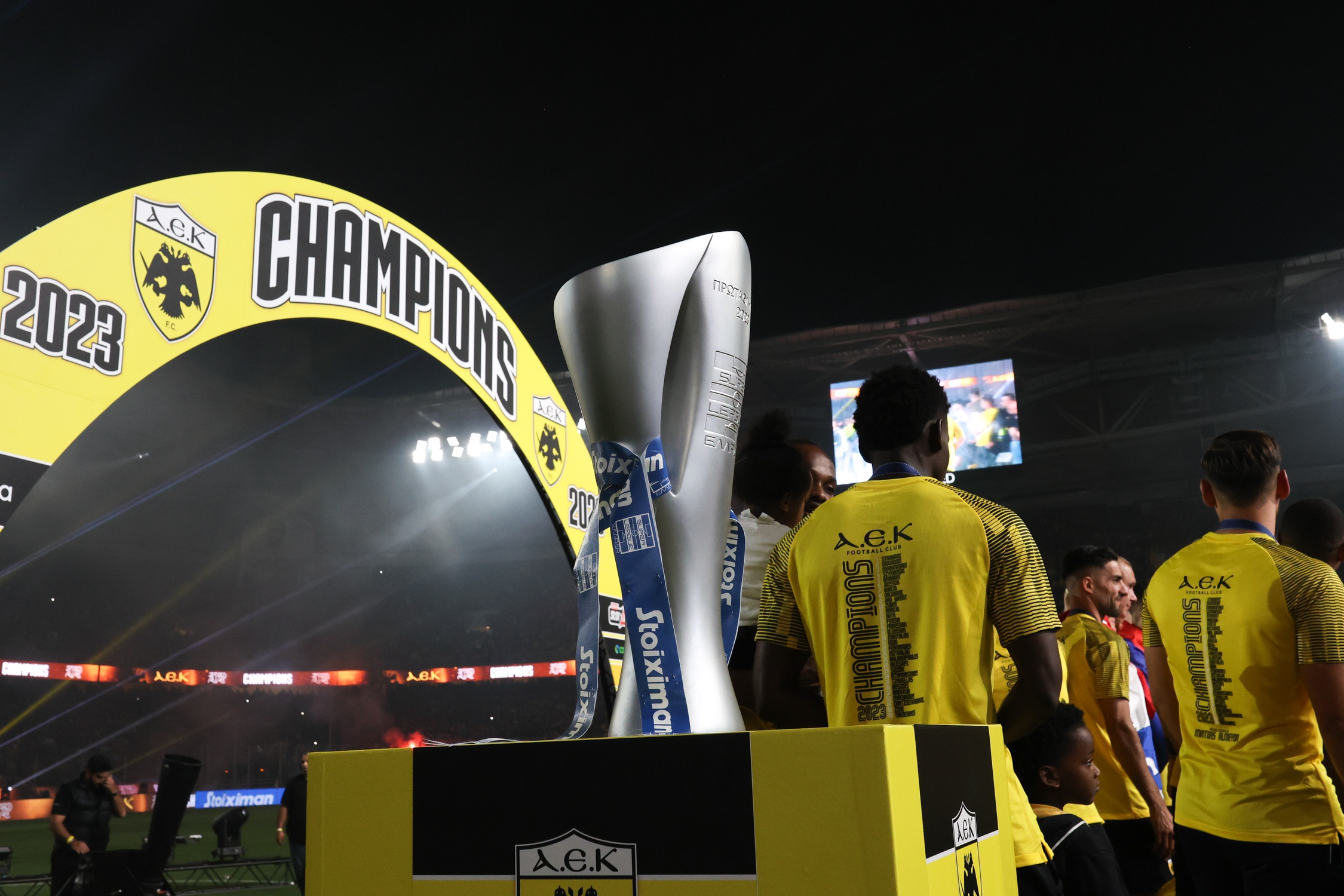 Την κατάκτηση του πρωταθλήματος Super League για τη σεζόν 2022/23 πανηγυρίζει η ΑΕΚ, καθώς στην 10η και τελευταία αγωνιστική των play off νίκησε 4-0 τον Βόλο στην κατάμεστη ΟΠΑΠ Αρένα και πήρε τον τίτλο με διαφορά 5 βαθμών από τον Παναθηναϊκό. Τα γκολ πέτυχαν οι Τσούμπερ (16΄), Γκατσίνοβιτς (33΄), Πινέδα (59΄) και Σιμάνσκι (86΄)