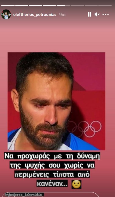 Αντίστοιχη ήταν και η ανάρτηση του Χρυσού Ολυμπιονίκη, Λευτέρη Πετρούνια. Ανέβασε τη φωτογραφία του Θοδωρή Ιακωβίδη στο Instagram και έγραψε: «Να προχωράς με τη δύναμη της ψυχής σου, να μην περιμένεις τίποτα από κανέναν»