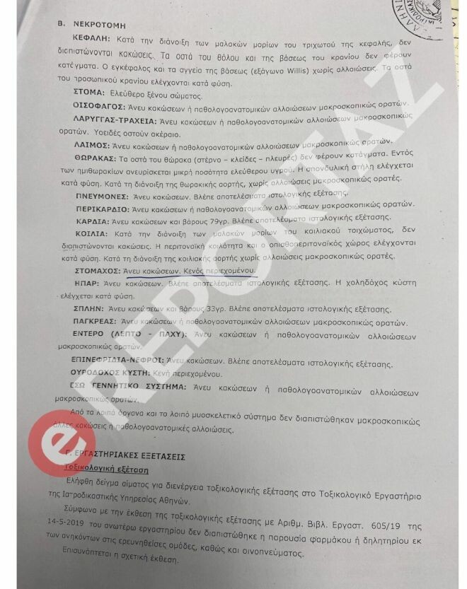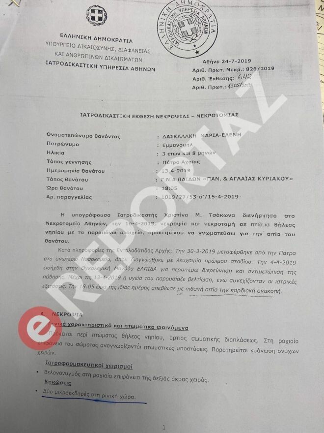 Ο θάνατος του παιδιού, καταλήγει η έκθεση νεκροψίας, προήλθε «συνεπεία ηπατικής ανεπάρκειας».