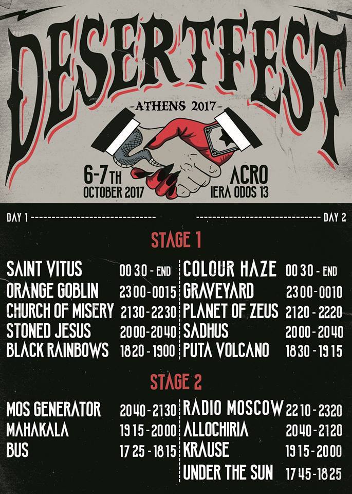 Το αναλυτικό πρόγραμμα εμφανίσεων του Desertfest Athens 2017