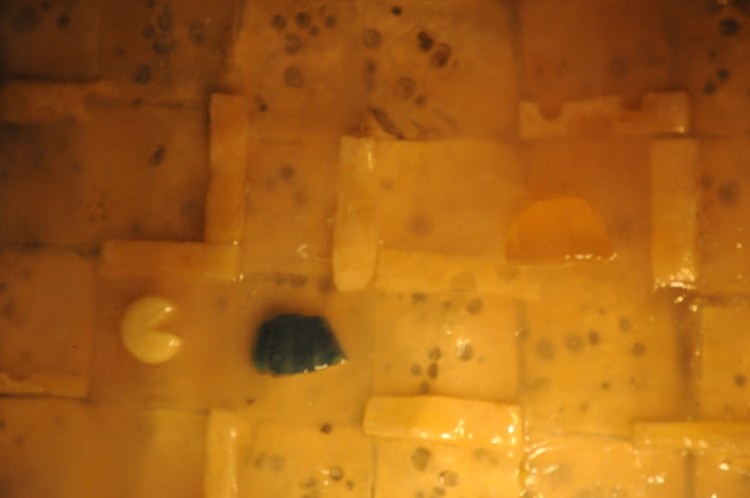 Ο συνδυασμός του τυριού και του βιντεοπαιχνιδιού arcade “Pac-Man” της δεκαετίας του 1980 στο “Pac Man Giga” – ένας βαρύς λαβύρινθος φτιαγμένος από τυρί Emmental, μπετόν και ρητίνη, όπου ένα μικρό Babybel PacMan προσπαθεί να βρει το δρόμο του μέσα από την πληθωρικότητα της διατροφής – μπορεί να διαβαστεί ως το σημαίνον για τη μεταμοντέρνα καταναλωτική κοινωνία και την αντιπαραγωγική κατανάλωσή της. Το όνομα “Pac-Man” προέρχεται από το ιαπωνικό “paku paku” για το “επανειλημμένο άνοιγμα και κλείσιμο του στόματος”. Στο παιχνίδι ο παίκτης ελέγχει τον Pac-Man, ο οποίος πρέπει να καταπιεί όλες τις κουκκίδες που βρίσκονται στην πίστα, αποφεύγοντας παράλληλα τα τέσσερα χρωματιστά φαντάσματα. Στο έργο του Καμάρη “Pac-Man Giga”, το Babybel δεν είναι συνδεδεμένο με το joystick στο κάτω μέρος του έργου, οπότε δυστυχώς δεν μπορεί να καταπιεί ουσιαστικά τίποτα. Είναι κολλημένο – κολλημένο ανάμεσα στον αστείρευτο αριθμό δυνατοτήτων και τις μηδενικές επιλογές αξιοποίησής τους. Μια στιγμή του χρόνου παγωμένη για πάντα μέσα σε άφθονη φρικιαστική ρητίνη, μια ισχυρή εικόνα για τη ριζική αναστολή του νοήματος, τη διαδικασία νοηματοδότησης που οδηγεί στο φάντασμα στον κόσμο του Ζακ Ντεριντά – και ίσως και στον κόσμο του Στέφανου Καμάρη: There is a ghost in my house.