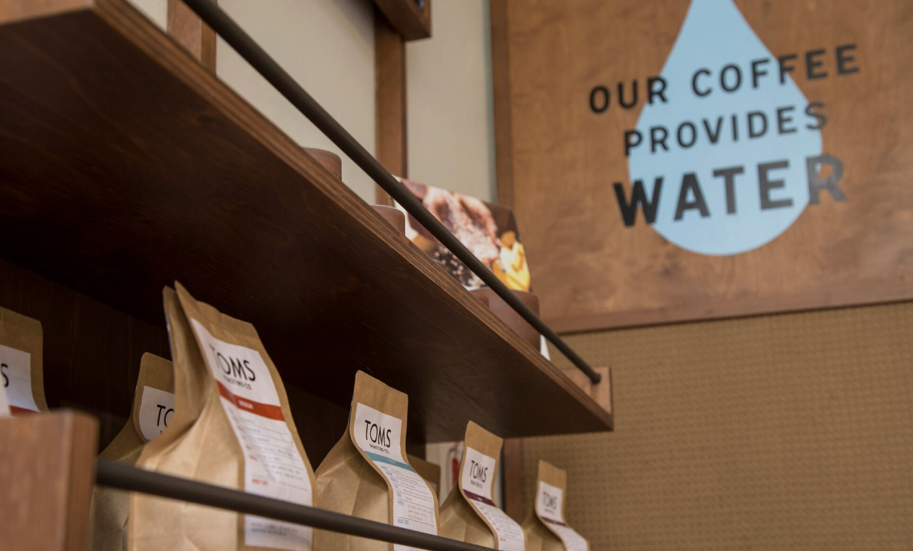 Για κάθε καφέ που αγοράζουμε η TOMS προσφέρει μια εβδομάδα πόσιμο νερό σε έναν άνθρωπο