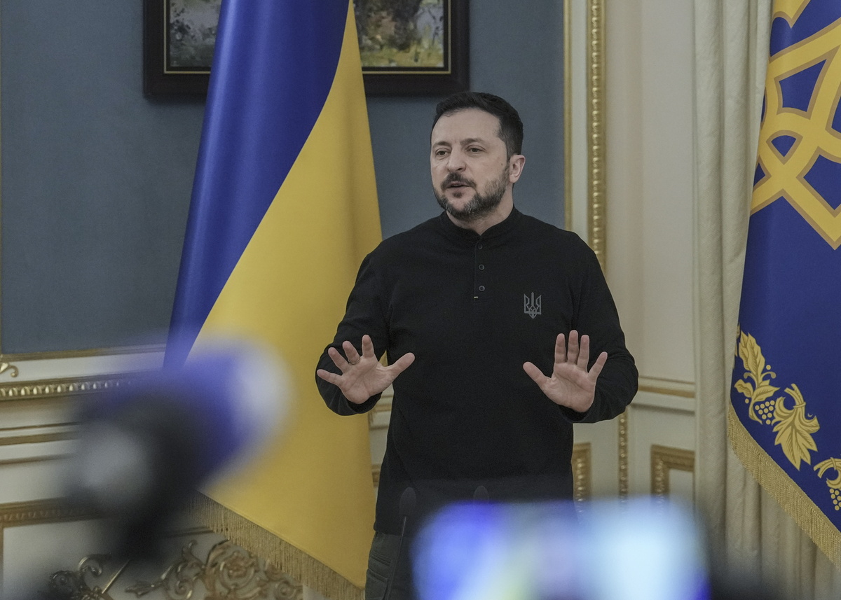epaselect epa11987721 Ukrainian President Volodymyr Zelensky addresses a press conference to inform the media over the US-mediated talks between Ukraine and Russia, in Kyiv, Ukraine, 25 March 2025, amid the ongoing Russian invasion. EPA/STRINGER