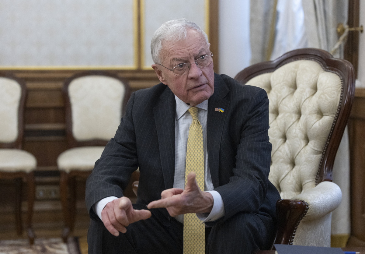 epa11907659 A handout picture made available by the Presidential Press Service shows US Special Presidential Envoy for Russia and Ukraine Keith Kellogg attends his meeting with Ukraine's Head of the Presidential Office of Ukraine Andriy Yermak in Kyiv, Ukraine, 19 February 2025. Keith Kellogg arrived in Ukraine to meet with senior Ukrainian officials amid the ongoing Russian invasion. EPA/PRESIDENTIAL PRESS SERVICE HANDOUT HANDOUT HANDOUT EDITORIAL USE ONLY/NO SALES