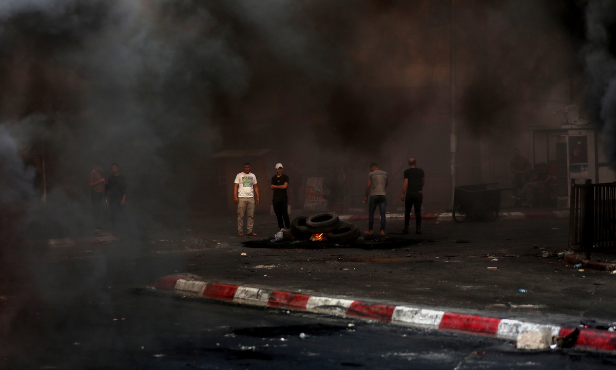 Παλαιστίνιοι πέταγαν πέτρες εναντίον ισραηλινών στρατιωτών ενώ ο ουρανός είχε σκοτεινιάσει από τους καπνούς εκρήξεων και καιόμενων οδοφραγμάτων, διαπίστωσε ανταποκριτής του Γαλλικού Πρακτορείου.