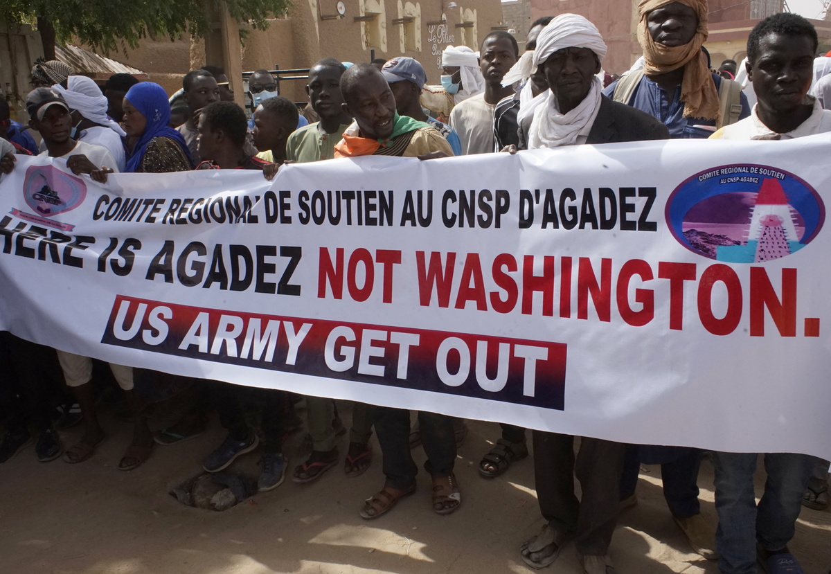 Η Ουάσιγκτον δέχθηκε καταρχήν στα μέσα Απριλίου να αποσύρει τους αμερικανούς στρατιωτικούς που έχει αναπτύξει στο κράτος του Σαχέλ. Εκτιμάται ότι είναι κάπου 650, στους οποίους προστίθενται μερικές εκατοντάδες πολίτες υπεργολάβοι του Πενταγώνου.