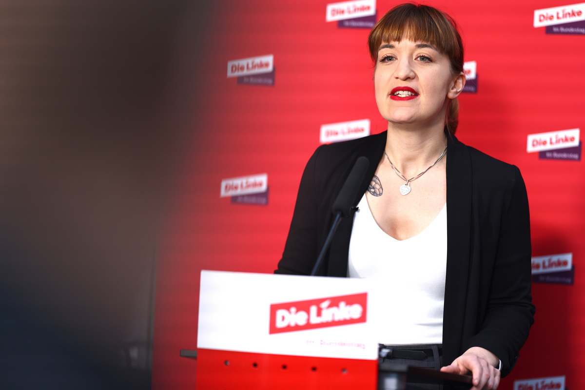 epa11886228 Heidi Reichinnek, the top candidate of the Left Party (Die Linke) for the upcoming parliamentary elections, addresses the media before a faction meeting at the Bundestag building in Berlin, Germany, 10 February 2025. EPA/HANNIBAL HANSCHKE