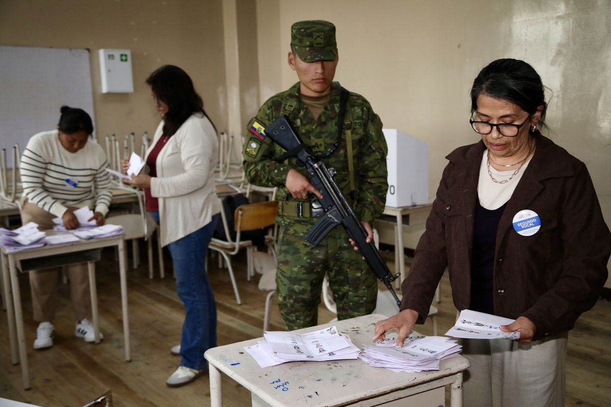 epa12030782 Voting juries begin counting votes at the close of voting in Quito, Ecuador, 13 April 2025. Voting centers in Ecuador closed after ten hours in the presidential runoff between President Daniel Noboa and Luisa Gonzalez, and officials began counting votes in a race expected to be very close. EPA/Gianna Benalcazar