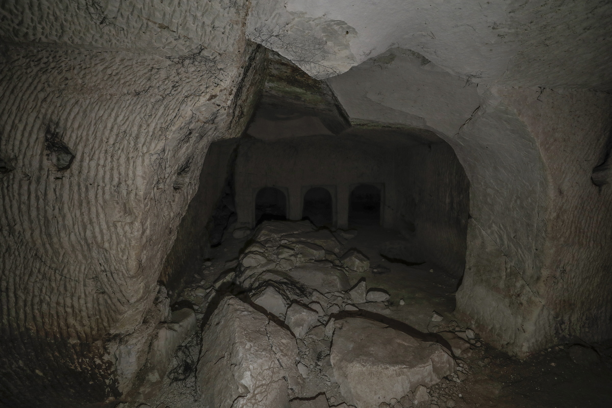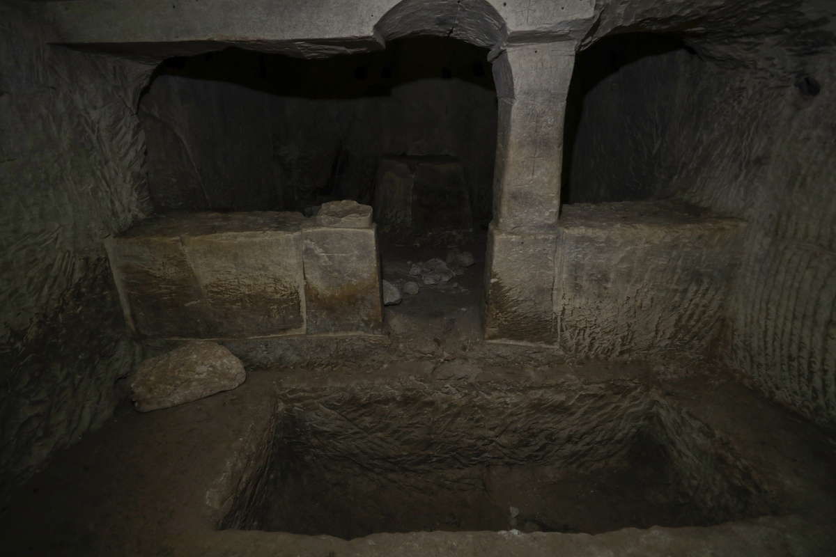 epa10374655 An interior view of a Second Temple-period burial cave in Lachish Forest, 20 December 2022, during excavations on the site of a grave estate from the days of the Second Temple (about 2,000 years ago), that was discovered in the South of Israel. According to Israel Antiques Authority (IAA) archaeologists, the burial cave that was continued to be used in the Byzantine and Early Islamic periods, became known as the ‘Salome Cave’, due to a popular legend that identified it as the burial place of Salome, the midwife of Jesus. The excavations in the courtyard uncovered a row of shop stalls that, according to the excavators, sold or rented clay lamps. ‘In the shop, we found hundreds of complete and broken lamps dating from the 8th–9th centuries CE,’ the experts said. EPA/ATEF SAFADI ATTENTION: This Image is part of a PHOTO SET
