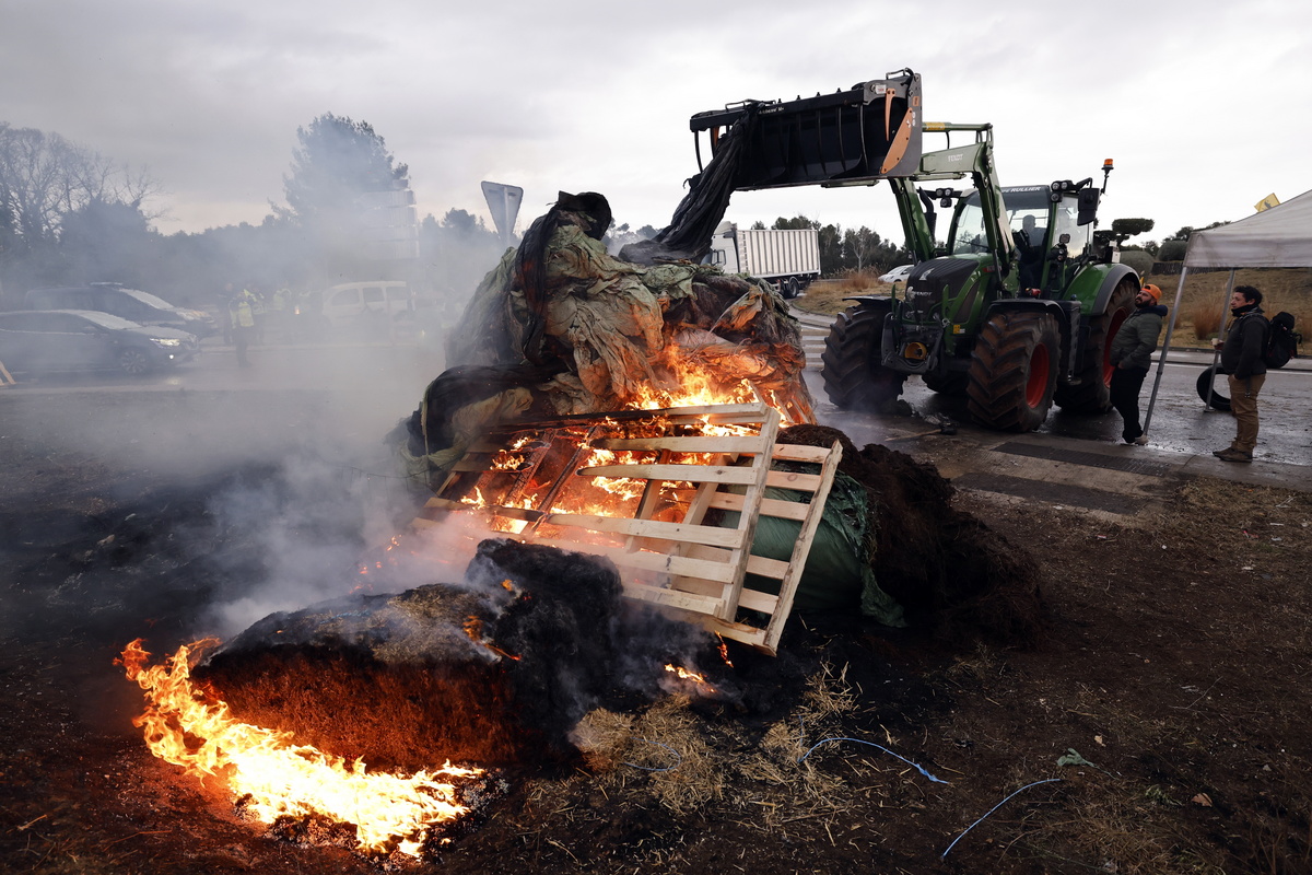 Ιδιαίτερα στην Καρμπόν, κοντά στην Τουλούζη, όπου οι αγρότες κατασκήνωσαν για τέταρτη νύκτα, τρακτέρ και δέματα με άχυρο κλείνουν τον αυτοκινητόδρομο.