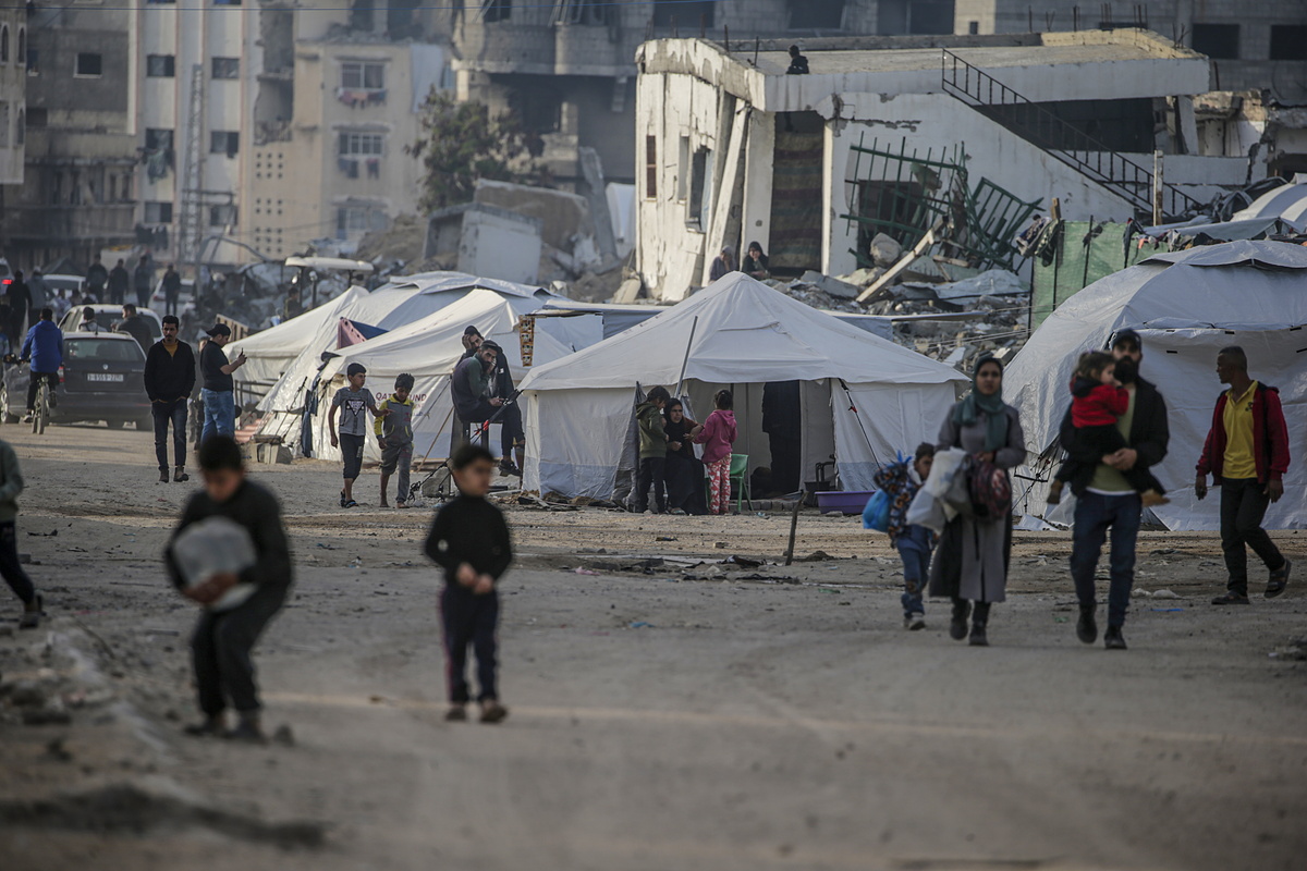 epa11987837 Tents of internally displaced Palestinians who fled the the northern Gaza Strip following an evacuation order issued by the Israeli army, in Gaza City, 25 March 2025. Israeli forces resumed airstrikes on Gaza on 18 March, ending a ceasefire that had been in place since 19 January. EPA/MOHAMMED SABER