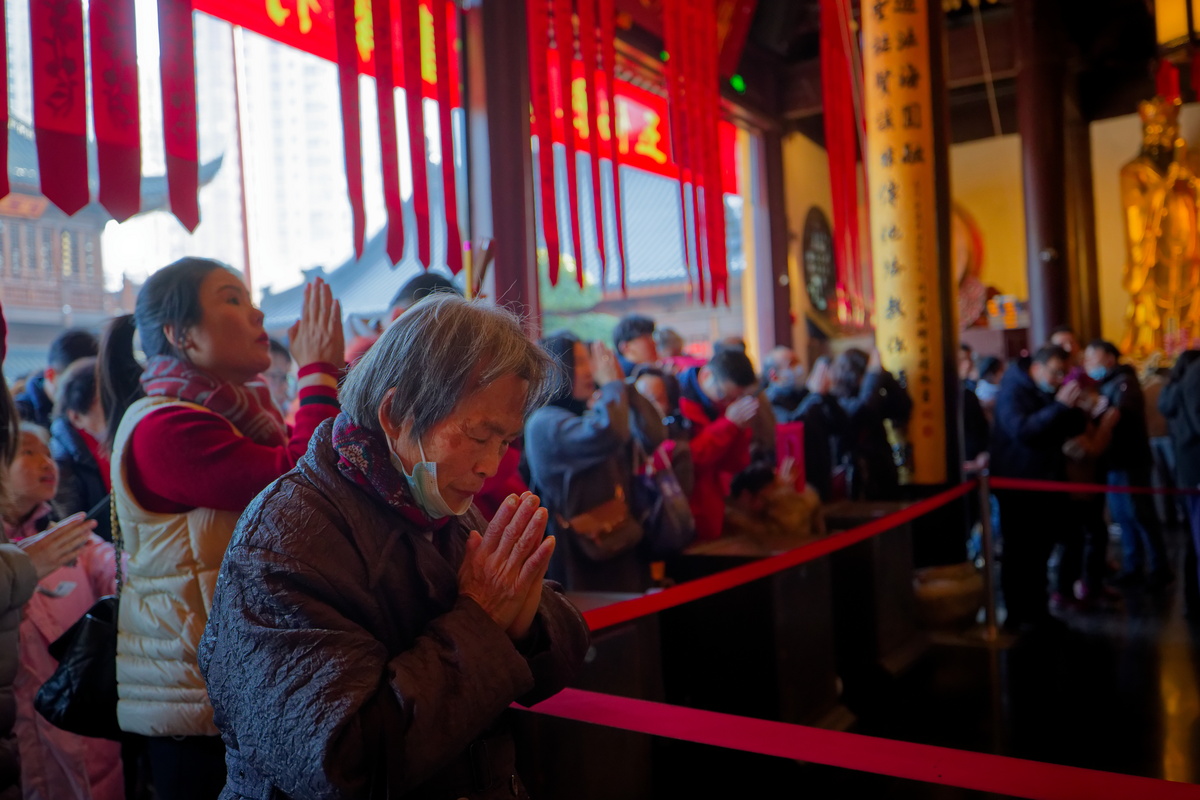Άνθρωποι προσεύχονται κατά την πρώτη ημέρα του Κινεζικού Σεληνιακού Νέου Έτους στη Σαγκάη, Κίνα.EPA/ALEX PLAVEVSKI