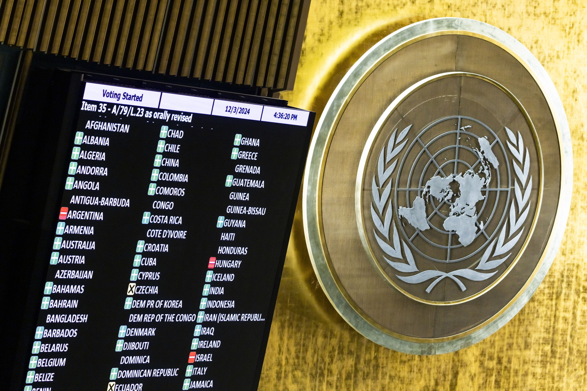 Η Γενική Συνέλευση του Οργανισμού Ηνωμένων Εθνών τάχθηκε για άλλη μια φορά χθες Τρίτη υπέρ του τερματισμού της ισραηλινής κατοχής των παλαιστινιακών εδαφών και της εγκαθίδρυσης παλαιστινιακού κράτους, συγκαλώντας για τον Ιούνιο του 2025 διεθνή σύνοδο με σκοπό να προωθηθεί η λύση των δύο κρατών.