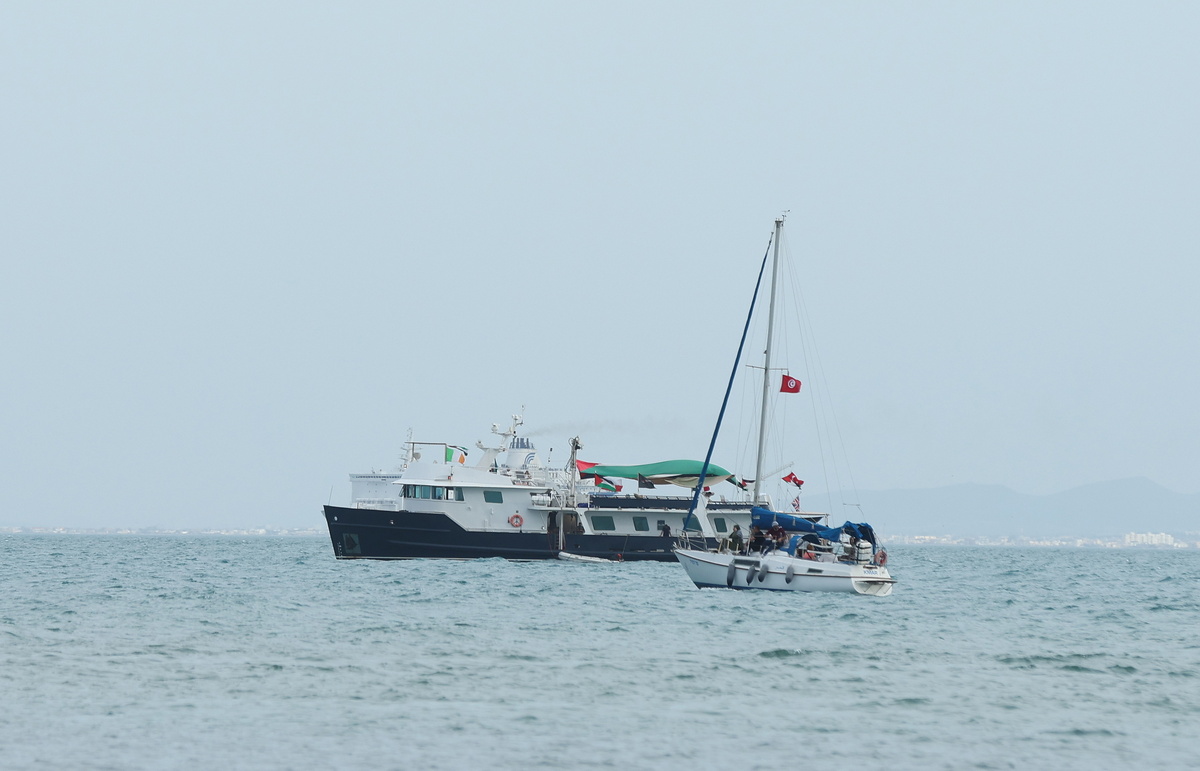 epa12361068 A vessel, which is part of the the Global Sumud Flotilla, is seen in Sidi Bou Said, Tunisia, 07 September 2025. The Global Sumud Flotilla will depart from Tunis to Gaza on 10 September as part of a humanitarian effort. The Global Sumud flotilla is an international maritime initiative, launched and led by non-governmental organizations and aim to break the Israeli blockade of the Gaza Strip and deliver vital aid. EPA/MOHAMED MESSARA 95525