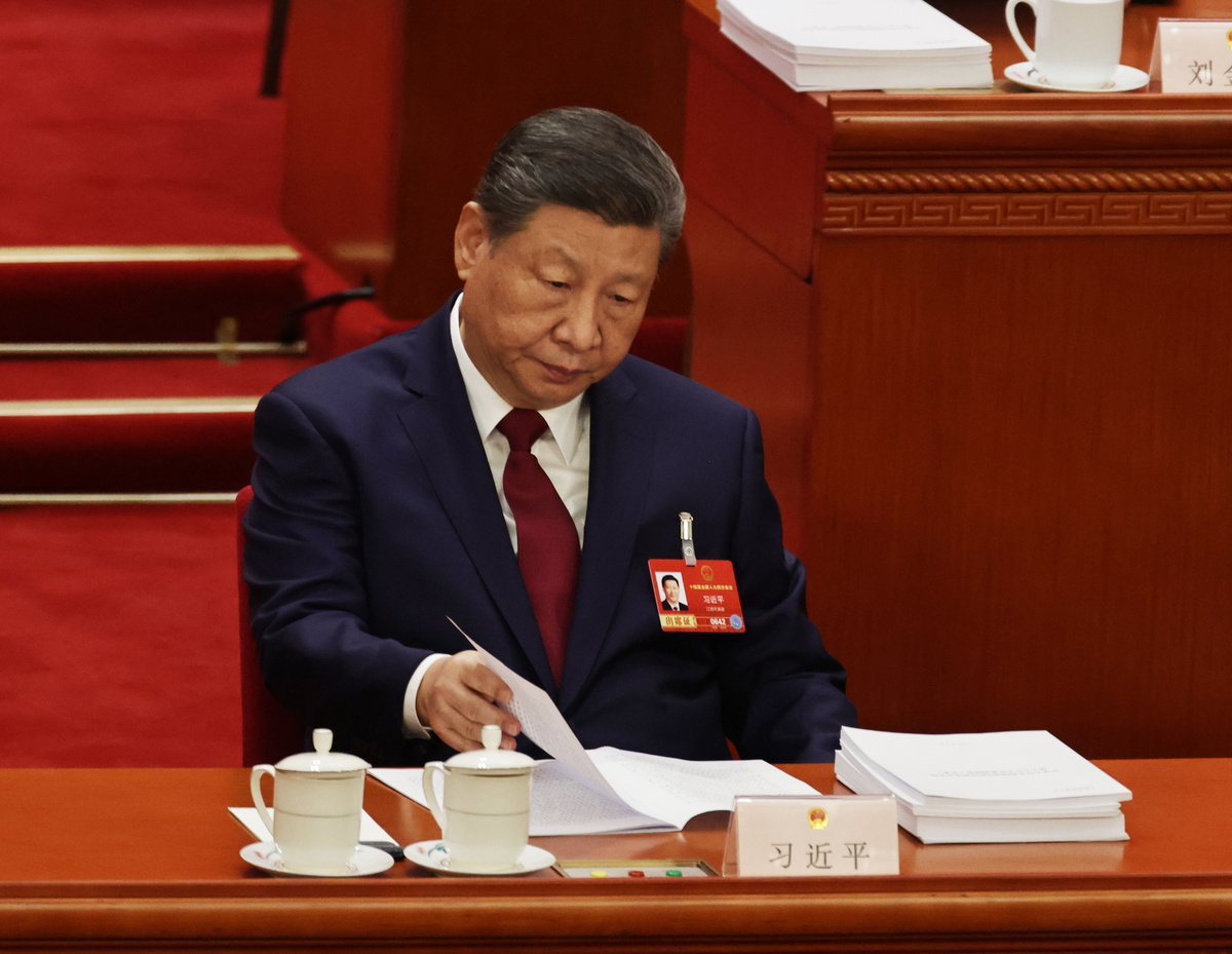 epa12795894 Chinese President Xi Jinping looks at documents during the opening ceremony of the Fourth Session of the 14th National People's Congress of China at the Great Hall of the People in Beijing, China, 05 March 2026. China's major annual political meetings, known as the 'Lianghui' or 'Two Sessions,' began on 04 March with the opening of the Chinese People's Political Consultative Conference (CPPCC), while the National People's Congress (NPC) opens on 05 March. EPA/ANDRES MARTINEZ CASARES