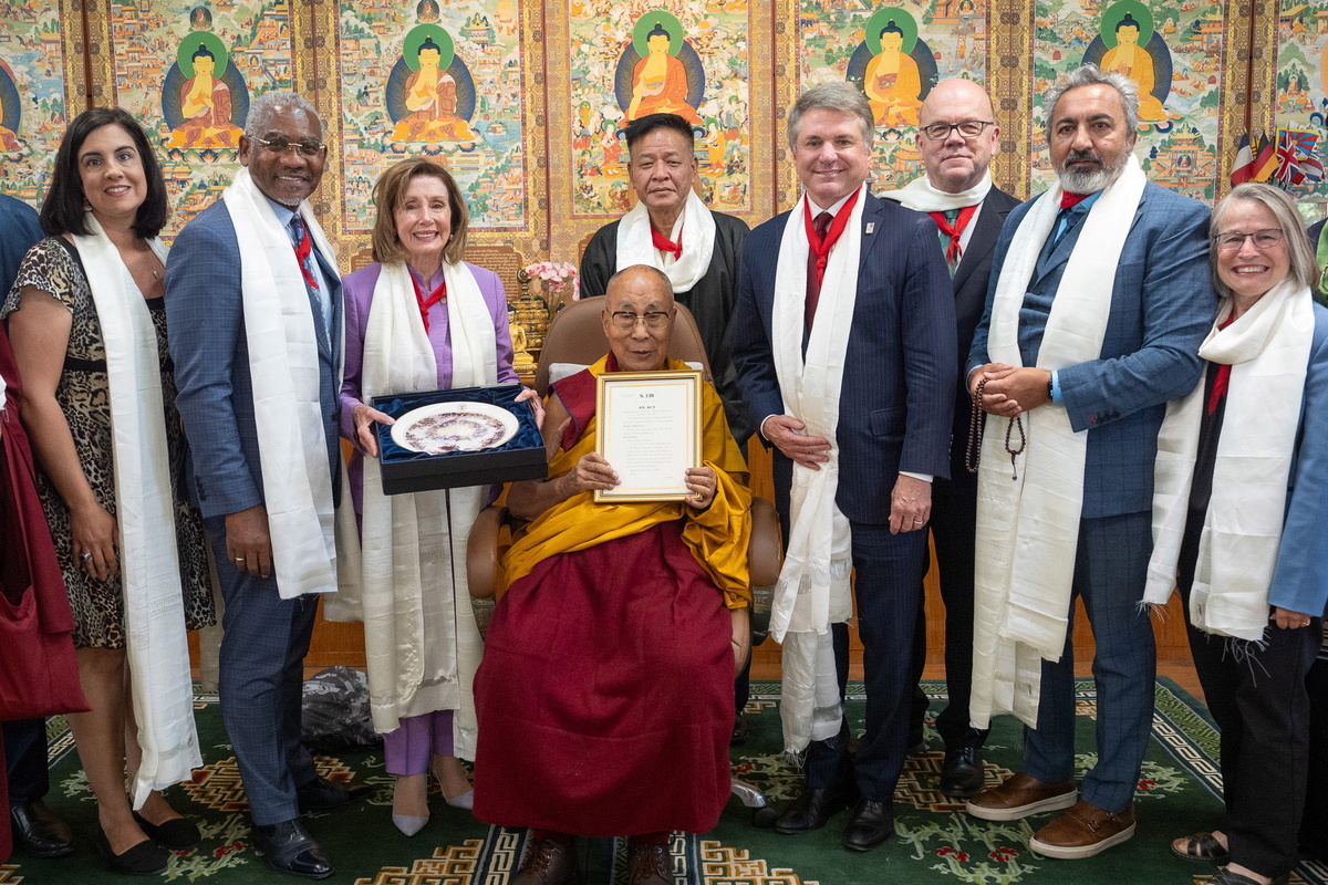 Η διακομματική ομάδα, με επικεφαλής την Πελόζι και τον ρεπουμπλικανό βουλευτή Μάικλ Μακόλ, επισκέφθηκε τον 88χρονο πνευματικό ηγέτη των βουδιστών στην κατοικία του στην Νταραμσάλα, στη βόρεια Ινδία.