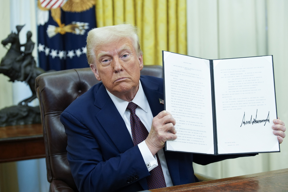 epa11848354 US President Donald Trump signs executive orders in the Oval Office of the White House in Washington, DC, USA, 23 January 2025. EPA/YURI GRIPAS / POOL