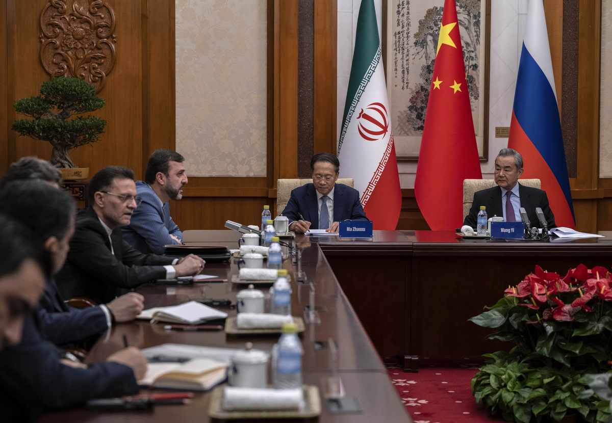 Η Κίνα, το Ιράν και η Ρωσία ζήτησαν σήμερα να αρθούν οι κυρώσεις με στόχο την Τεχεράνη, στη διάρκεια τριμερών συνομιλιών που διεξήχθησαν στο Πεκίνο σ’ ένα πλαίσιο ισχυρών πιέσεων της Ουάσινγκτον σχετικά με το ιρανικό πυρηνικό πρόγραμμα.