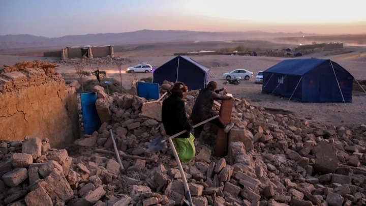Οι διασώστες αναζητούν επιζώντες στα συντρίμμια στην επαρχία Χάιμπερ Παχτούνχβα, στα σύνορα με το Πακιστάν, όπου τα σπίτια που είναι κατασκευασμένα από λάσπη και πέτρες κατέρρευσαν λόγω του σεισμού.