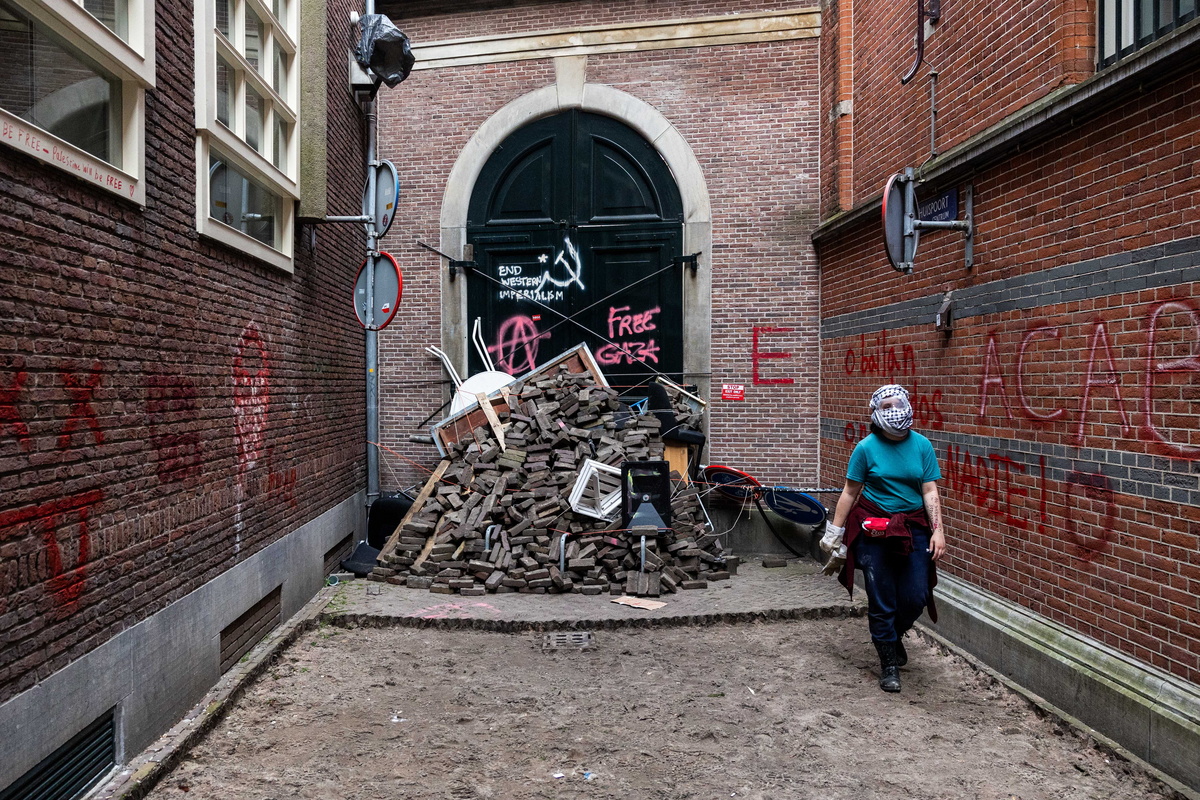 Σε πλάνα του ολλανδικού τηλεοπτικού δικτύου AT5 διακρίνονται αστυνομικοί να συλλαμβάνουν διαδηλωτές και, χρησιμοποιώντας εκσκαφέα, να ξηλώνουν οδοφράγματα που είχαν στήσει φοιτητές.
