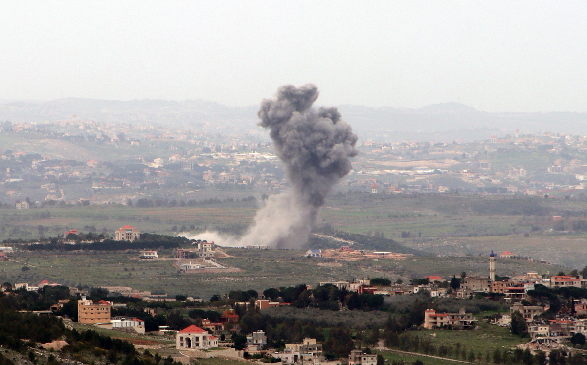 epa11994918 Smoke rises following Israeli airstrikes in Zawtar al-Sharqiya village as seen from Majaayoun, southern Lebanon, 28 March 2025. According to the Israeli military, a wave of strikes were carried out on Hezbollah targets in the south of Lebanon. EPA/RABIH DAHER