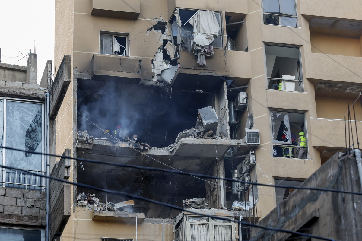 epaselect epa12810721 Emergency services inspect the damage after an Israeli strike targeted an apartment at a building in the Aisha Bakkar neighborhood, Beirut, Lebanon, 11 March 2026. According to the Lebanese Ministry of Public Health, more than 570 people were killed and 1,444 others injured in airstrikes across Beirut's southern suburbs and villages in southern Lebanon since the start of renewed hostilities. The Israeli military stated it is conducting strikes across the country targeting Hezbollah infrastructure and personnel. EPA/WAEL HAMZEH