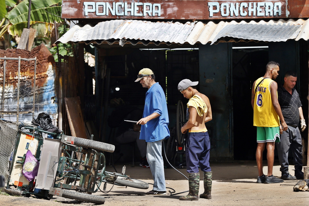 epa12825985 People work at a workshop in Havana, Cuba, 16 March 2026. Cuba's national electrical grid has suffered a total collapse following a three-month halt in foreign oil shipments. EPA/ERNESTO MASTRASCUSA