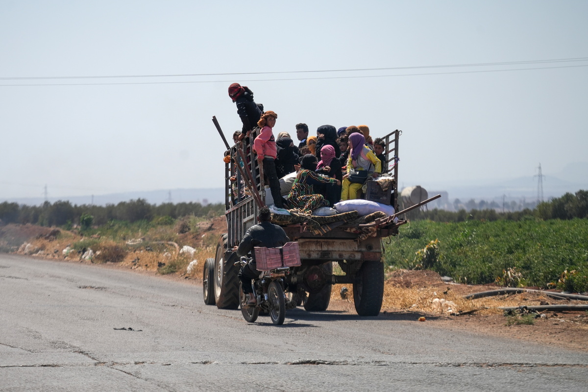 epaselect epa12243418 Displaced Arab Bedouin families travel with their belongings towards the town of Busra al-Harir, Daraa province, from As Suwayda, Syria, 17 July 2025. Syrian government officials and Druze minority leaders reached a new ceasefire agreement on 16 July, following days of clashes between Bedouin tribes, Druze militants and government forces in the mainly Druze southern city of Swayda. EPA/AHMAD FALLAHA