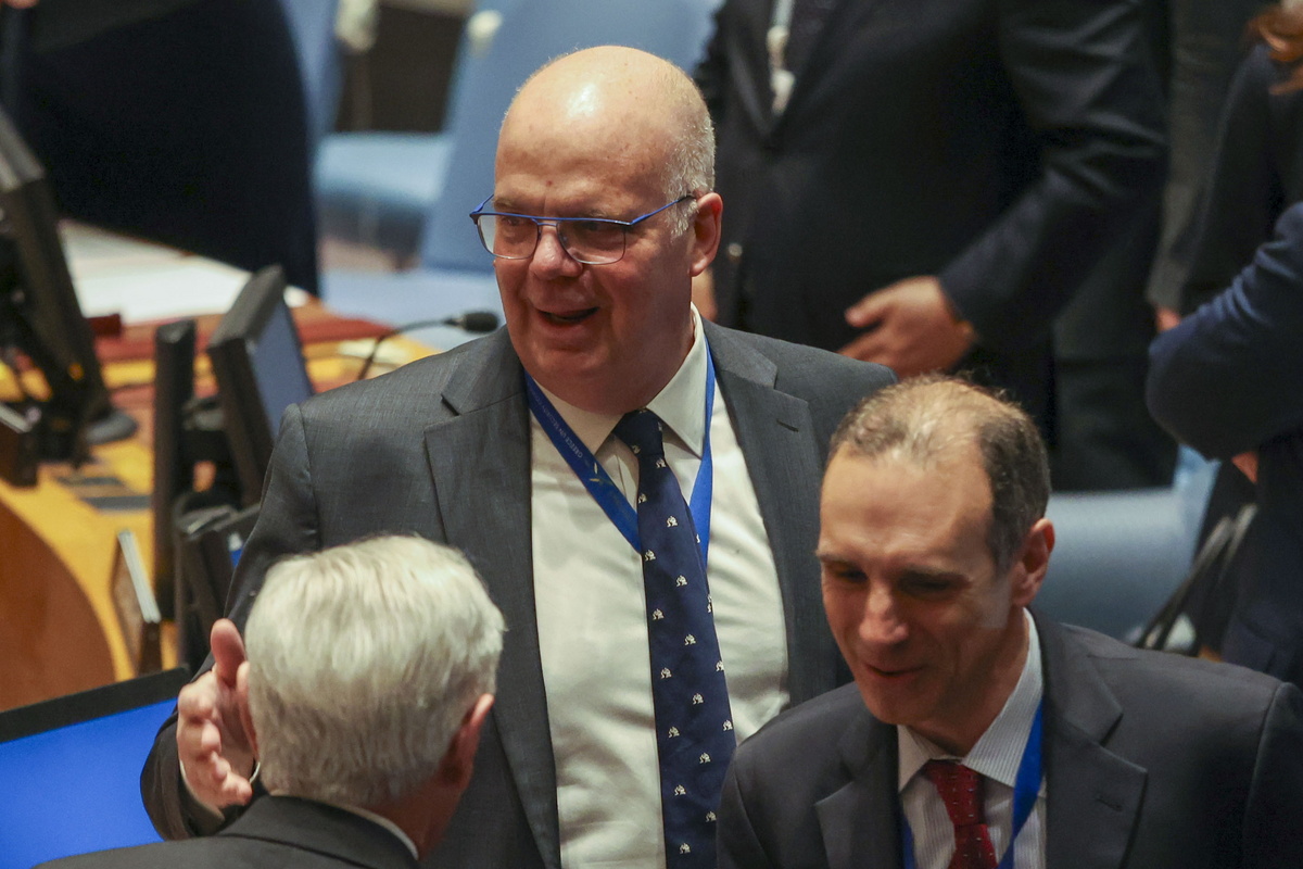epa11803825 Greek ambassador Evangelos Sekeris speaks to others before the start of a Security Council meeting at the United Nations headquarters in New York, New York, USA, 03 January 2025. Greece started a two-year term as a non-permanent member of the United Nations Security Council. The meeting welcomed new non-permanent members and covered the current situation in Gaza. EPA/SARAH YENESEL