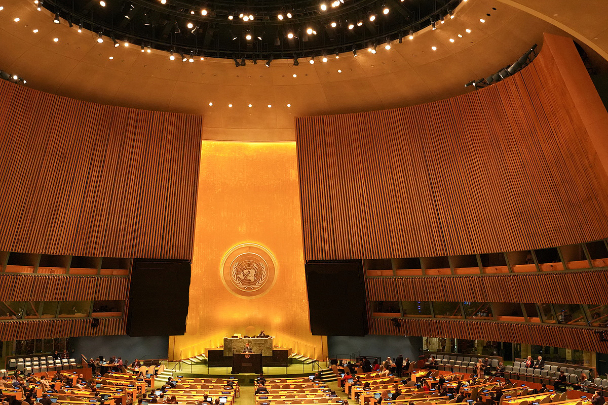 epa11627396 Kyriakos Mitsotakis, Prime Minister of Greece, speaks during the General Debate of the 79th session of the United Nations General Assembly at United Nations Headquarters in New York, New York, USA, 26 September 2024. The annual high-level General Debate gathers world leaders from 24 to 28 September, and 30 September under the theme, 'Leaving no one behind: acting together for the advancement of peace, sustainable development and human dignity for present and future generations'. EPA/STEPHANI SPINDEL
