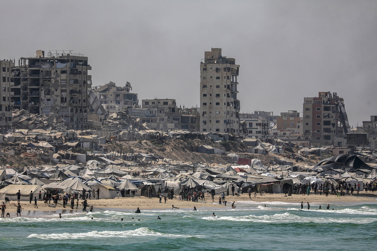 epa12367237 Tents of internally displaced Palestinians, who fled from the east of Gaza City and northern Gaza, in the west of Gaza City, Gaza Strip, 10 September 2025. According to the Palestinian Ministry of Health in Gaza, at least 16 members of a family were killed following an Israeli airstrike in the west of Gaza City. EPA/MOHAMMED SABER