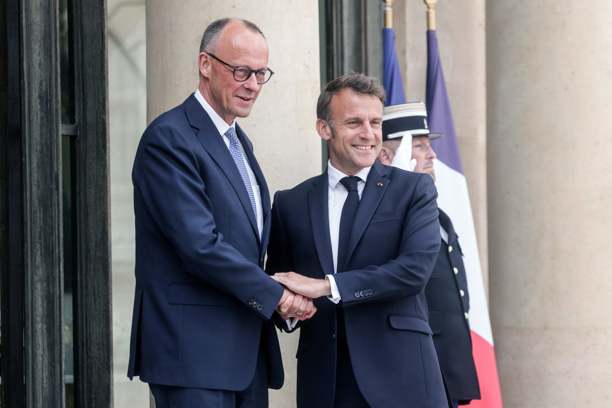 Ο νέος καγκελάριος της Γερμανίας Φρίντριχ Μερτς έφθασε νωρίτερα στο Μέγαρο των Ηλυσίων όπου έγινε δεκτός με μεγάλη θέρμη από τον πρόεδρο της Γαλλίας Εμανουέλ Μακρόν για την πρώτη του επίσημη επίσκεψη στο εξωτερικό. Το Παρίσι είναι κατά παράδοσιν ο πρώτος σταθμός κάθε νέου γερμανού ηγέτη.