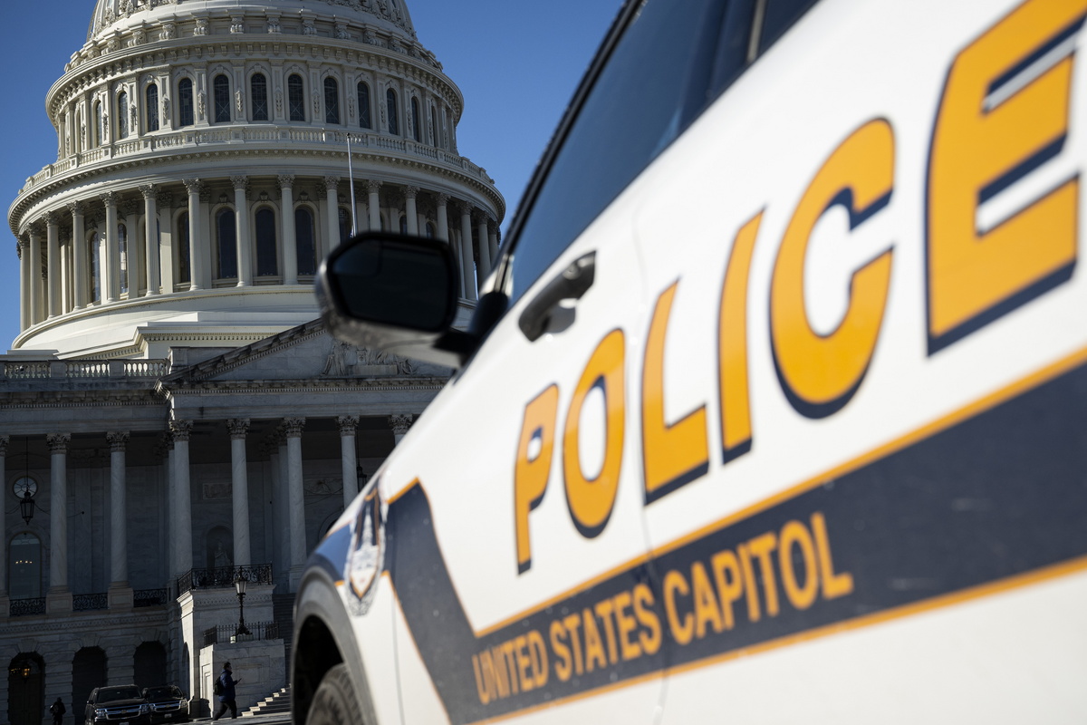 epa11826873 US Capitol Police vehicle parked near the US Capitol Building in Washington, DC, USA, 15 January 2025. Authorities have begun fortifying Capitol Hill and many areas around Washington in preparation for Inauguration Day on 20 January 2025. EPA/GRAEME SLOAN