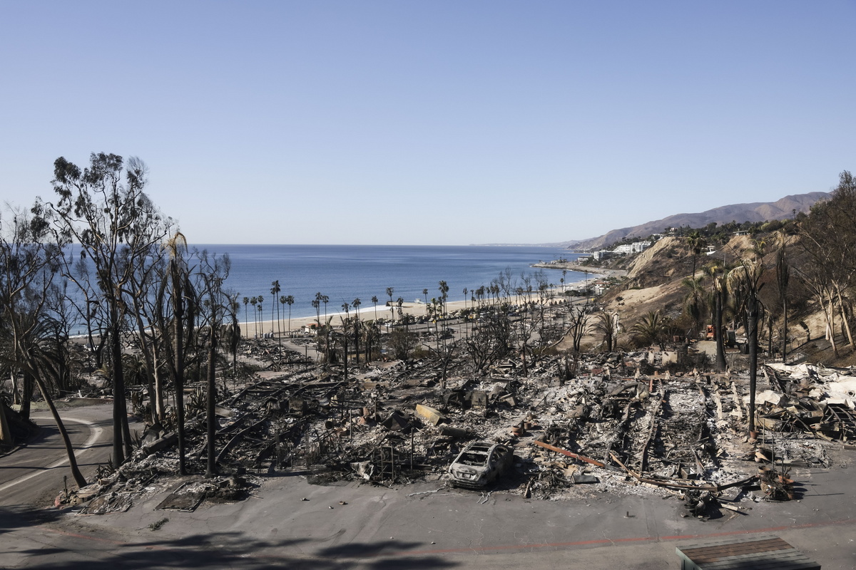 epa11822412 A neighborhood destroyed by the Palisades wildfire in the Pacific Palisades neighborhood of Los Angeles, California, USA, 13 January 2025. Multiple wildfires, which have already destroyed thousands of homes and forced thousands of people to evacuate neighborhoods, are continuing to burn across thousands of acres in Southern California in the Los Angeles area. EPA/ALLISON DINNER