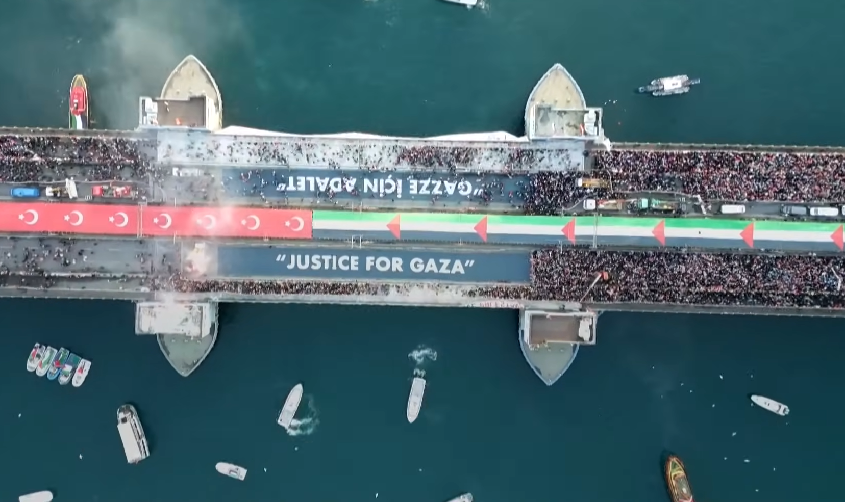 Οι διαδηλωτές συγκεντρώθηκαν κάτω από τον γαλανό ουρανό και παρά το έντονο κρύο έκαναν πορεία ως τη γέφυρα του Γαλατά, όπου οργανωνόταν συγκέντρωση με κεντρικό σύνθημα «δεν θα μείνουμε σιωπηλοί, δεν θα ξεχάσουμε την Παλαιστίνη», διαπίστωσε δημοσιογράφος του AFP.