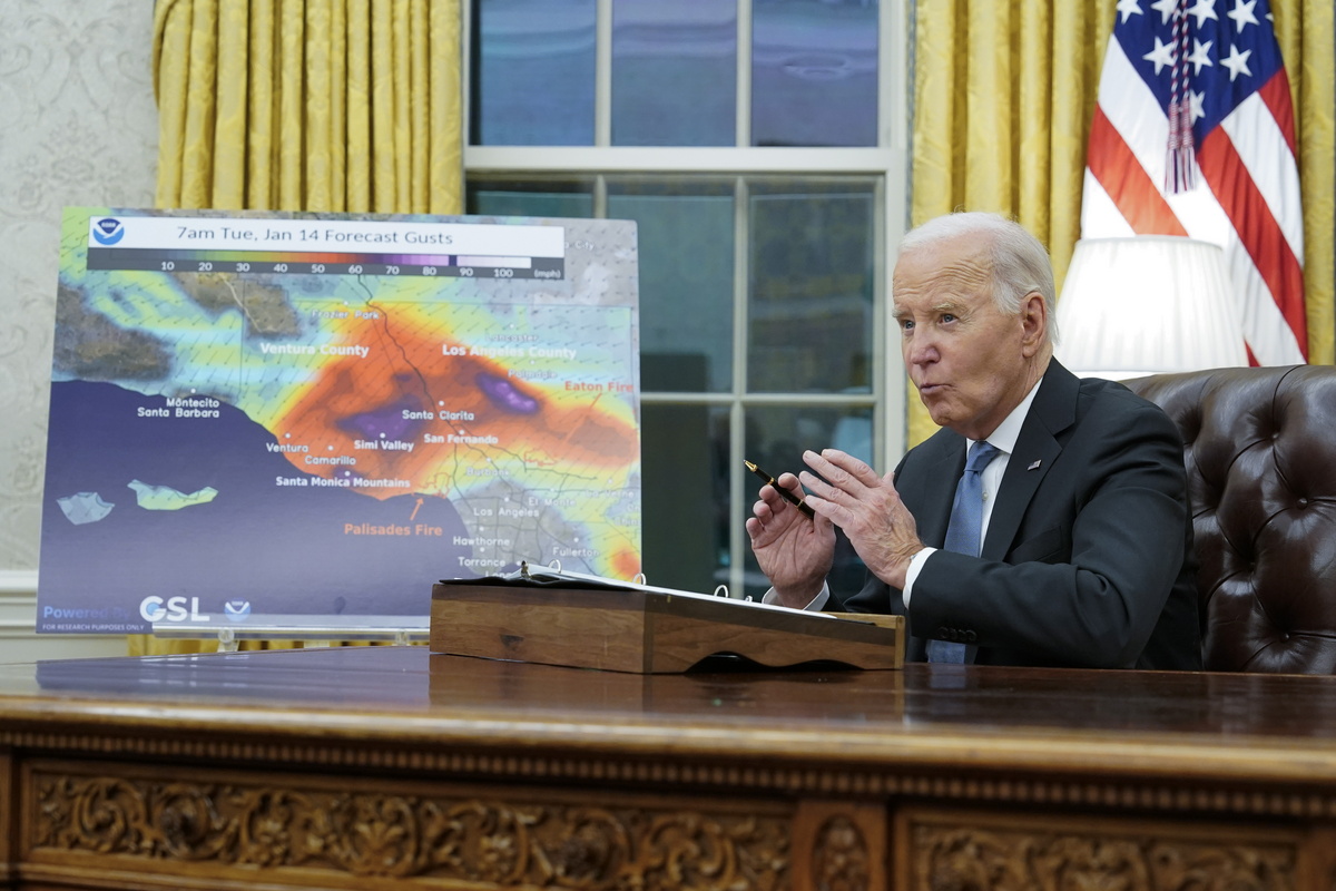 «Θα κοστίσει δεκάδες δισεκατομμύρια δολάρια για να επαναφέρουμε το Λος Άντζελες στην κατάσταση» όπου βρισκόταν προτού το πλήξουν οι φωτιές, προειδοποίησε ο Μπάιντεν, την ώρα που η μεγαλούπολη της Καλιφόρνιας προετοιμάζεται για την προβλεπόμενη νέα ενίσχυση των ανέμων — οι οποίοι απειλούν να εξαπλώσουν ξανά τις φλόγες που έχουν αφήσει πίσω τουλάχιστον 24 νεκρούς, κατά τον πιο πρόσφατο επίσημο απολογισμό.