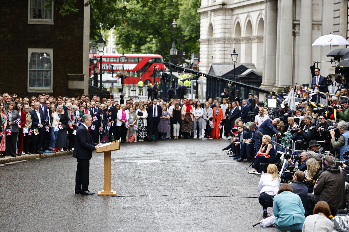 Στην πρώτη ομιλία του ο Στάρμερ, που έγινε δεκτός στην Ντάουνινγκ Στριτ από μεγάλο πλήθος υποστηρικτών του αφού εκλήθη επίσημα από τον βασιλιά Κάρολο να σχηματίσει κυβέρνηση, μίλησε για μια μετριοπαθή πολιτική με στόχο να αποκατασταθεί η εμπιστοσύνη των ψηφοφόρων που έχει διαρραγεί.